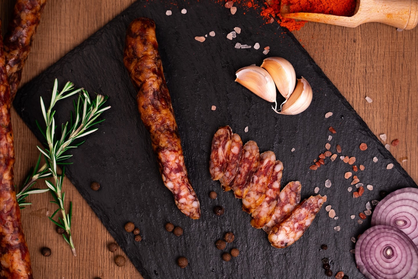 Smoked in Transylvania’s homemade pork and beef sausages are naturally dry aged for at least 14 days for an intense and authentic taste. Slow-cooked and smoked with hardwood beechwood, they preserve the flavour of Transylvanian old fashioned recipes.